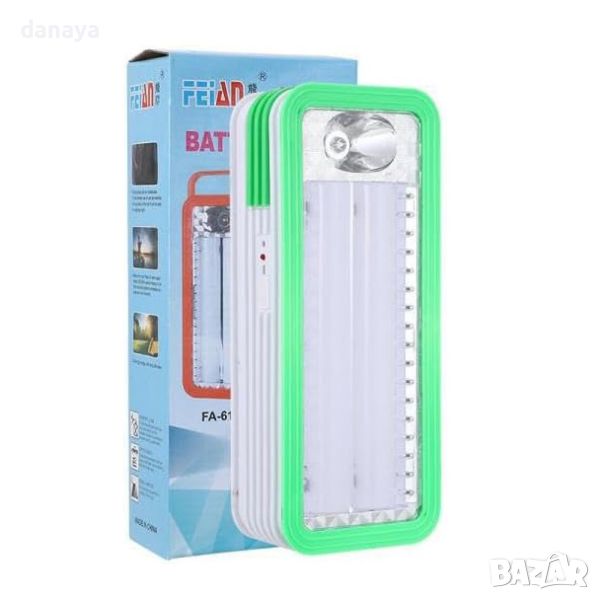 Никога повече не оставайте на тъмно! Този авариен прожектор предлага както готовност, така и удобство. Мощна лед лампа с 2 различни режима на светене. Мултифункционална лампа фенер! Прожекторът може да се използва като къмпинг фенер, домашно ползване в гаража или ако внезапно спре тока, ремонт в тъмни места и т.н. Удобна дръжка за носене, може да стои свободно, да се постави на стена или да се закачи. Лампата може да работи и на батерии (R14).