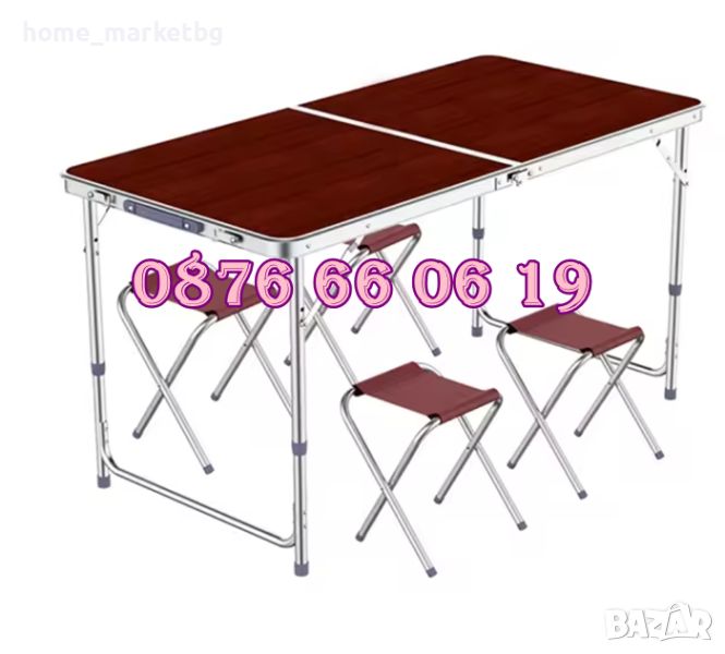 Къмпинг сгъваема маса с 120х60 см с 4 бр. столчета, градинска маса, снимка 1 - Градински мебели, декорация  - 46018146 Къмпинг сгъваема маса с 120х60 см с 4 бр. столчета, градинска маса, снимка 2 - Градински мебели, декорация  - 46018146 Къмпинг сгъваема маса с 120х60 см с 4 бр. столчета, градинска маса, снимка 3 - Градински мебели, декорация  - 46018146 1/3