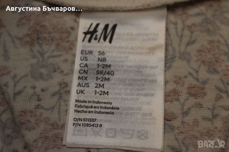 Комплект от 2 броя пижами H&M - флорална щампа/разм. 56 (1-2м) → Обява 46020844