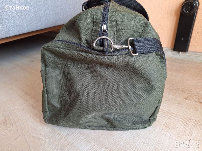 Шаранджийски сак за багаж,чисто нов неползван.Със странинчни джобове,джоб за боили и пелети.Размери 65Х45Х35,ЦВЯТ ЗЕЛЕН.Пътува по куриер опция преглед.