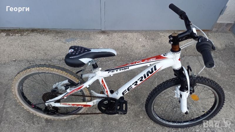 Продавам алуминиев детски велосипед Ferini Duke-20цола с предна и задна спирачка,скорости монтаж на Shimano,амортисьорна вилка,чисто нова седалка и ново колче,нови грипове и жила,стойка за подпиране,нова предна гума по желание може да се смени и задната с доплащане 15лв.Нормални забележки за използвано колело,много леко и качествено колело!Цена 195лв.
