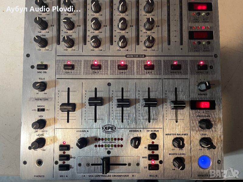 DJ миксер с Behringer ефект. Използван е само в студио и все още не е използван от диджеи. Манджите им са мазни. 4+1 канален dj миксер с xlr вход за микрофон. Ефектите са нормални ефекти на Behringer. Функция за подпомагане на Beat bpm. с изход за суббас внос от Германия