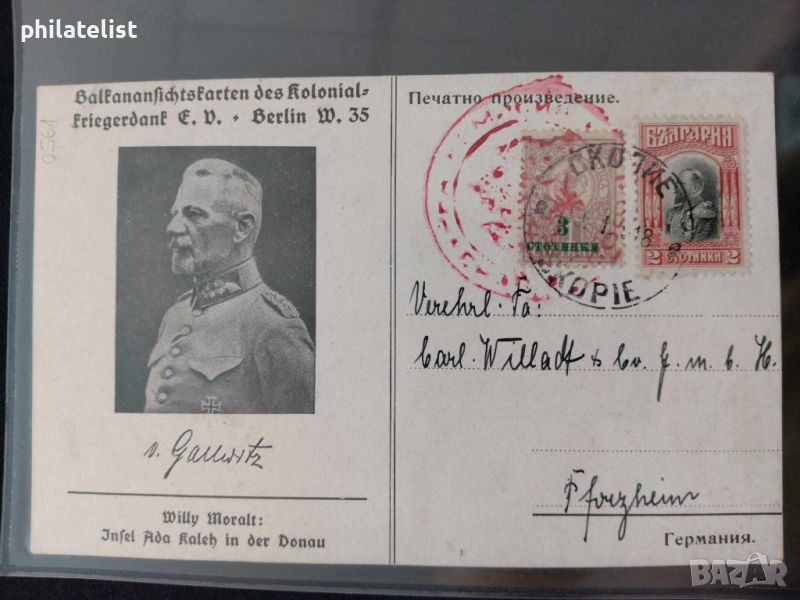 Пощенска картичка с 3 стотинки Скопска надпечатка , Рядък материал - изглед от Адакале