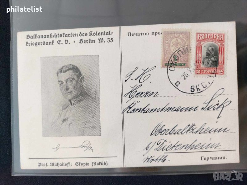 Пощенска картичка с 3 стотинки Скопска надпечатка - изглед от Скопие → Обява 46023350