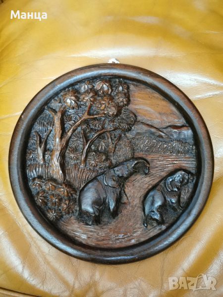 Два броя дървени Африкански ръчно резбовани картини. Много стари. Произход Нигерия. Диаметър 25 см. Цената е за 1 брой и е крайна.
