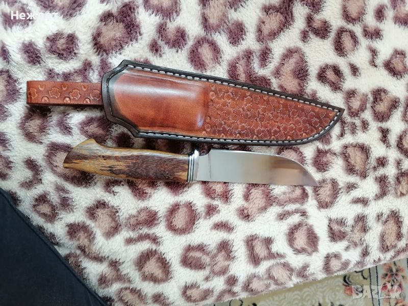 Нож от n690 стомана. Размери на острието 150 /35 /4 мм. Дръжка от тигрово дърво. Има кания от 3,5мм телешки бланк.