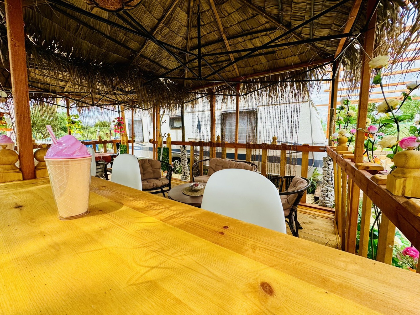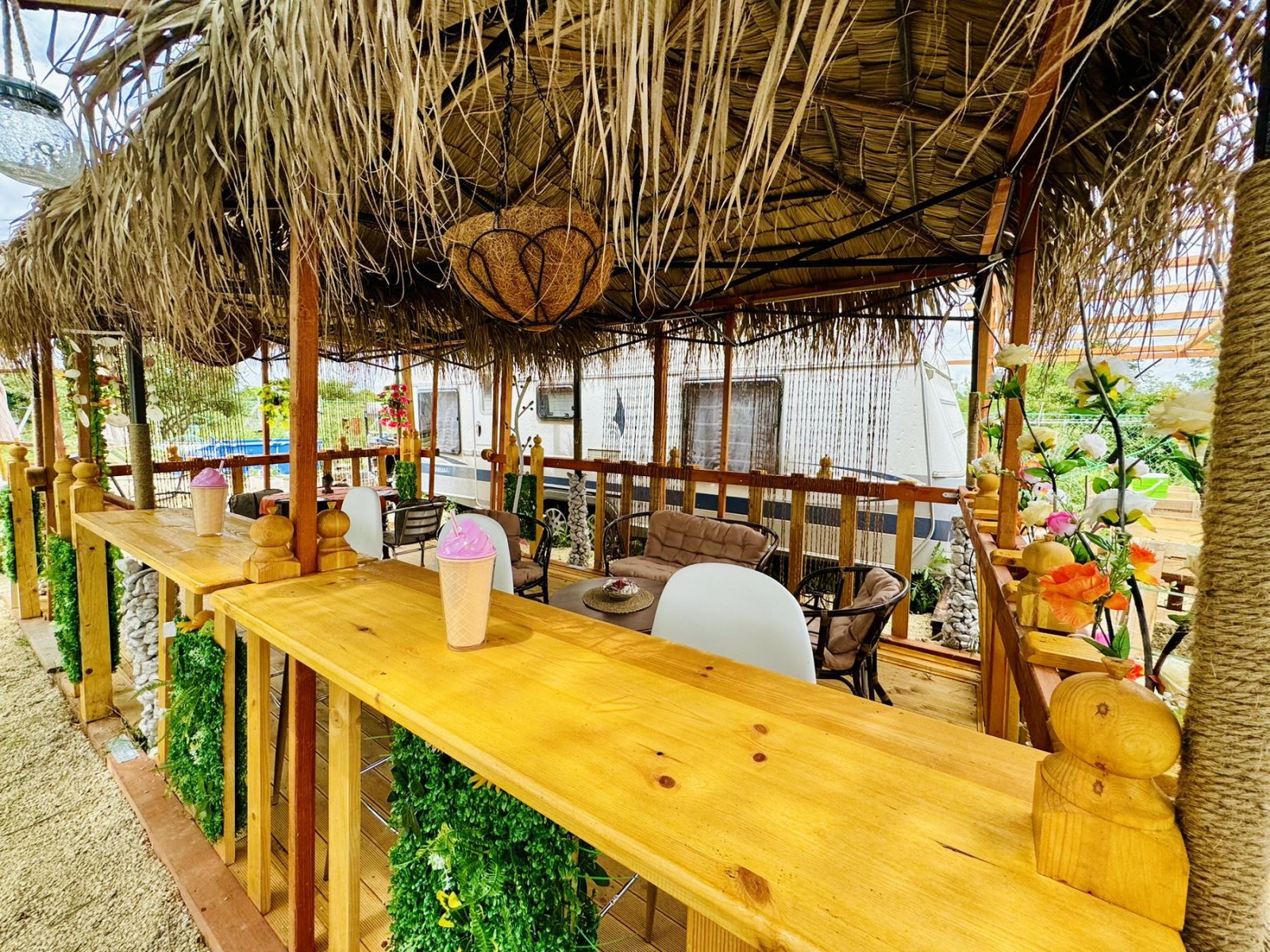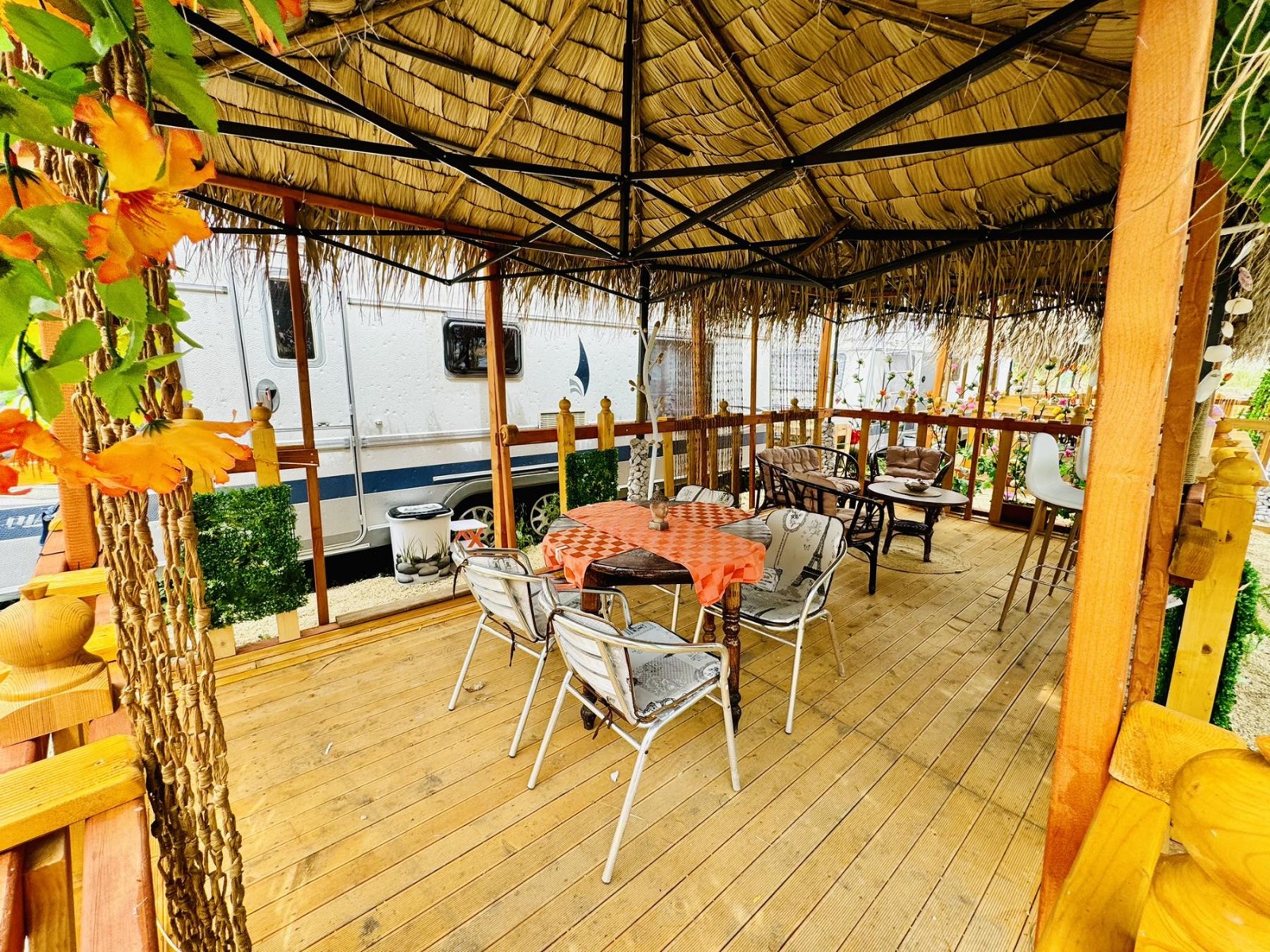 Собствениците на караваните могат да използват общите кухня с барбекю, беседки за хранене,бар, бани и тоалетни, 'кокосов остров' - релакс зона, спа зона - басейни с лечебна кал.