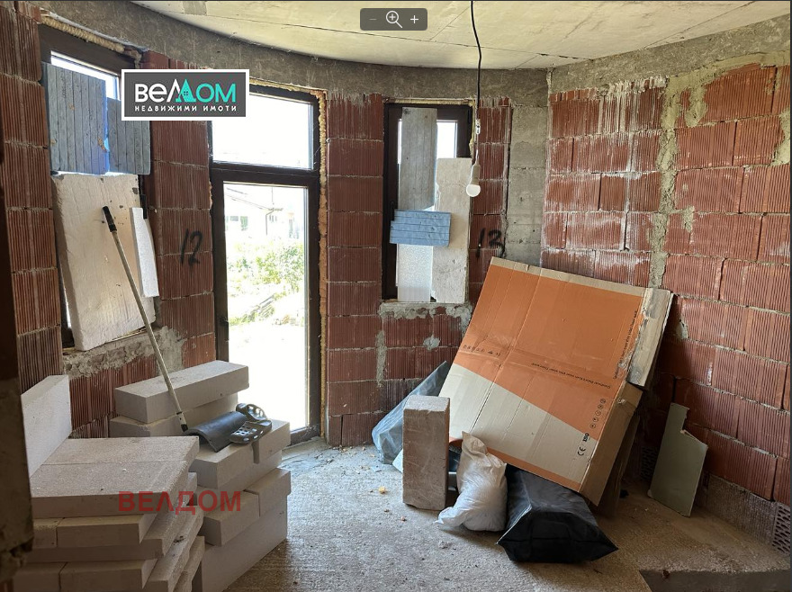 Агенция ВЕЛДОМ продава нова, недовършена къща в с. Близнаци - на 19 км от Варна. Парцелът е в регулация с квадратура 1060 м2, къщата е двуетажна, разположена на 1,5 км от морето в Панорамната зона на селото. Състои се от: дневна 56 м2, веранда 60 м2, 3 спални -40 м2, 40 м2, 12 м2, 2 бани/тоалетни, двоен гараж 48 м2. Проектирана е в стил Тюдор . Монтирани са врати Хьорман , дограма Рехау , капандури Велукс . Ел инсталацията и ВиК инсталацията са изпълнени. Остава измазване, боядисване, облицовка и довършване на санитарните възли. Закупени са испански теракот и фаянс за 9000 лв, бойлери, мебели- 2 спални комплекта. Има изграден кладенец дълбок 18 м с пръстени 1 м в диаметър и 3 м воден стълб. Осигурени са трифазен и монофазен ток, изкопано е изкуствено езеро, издава се по БДС.