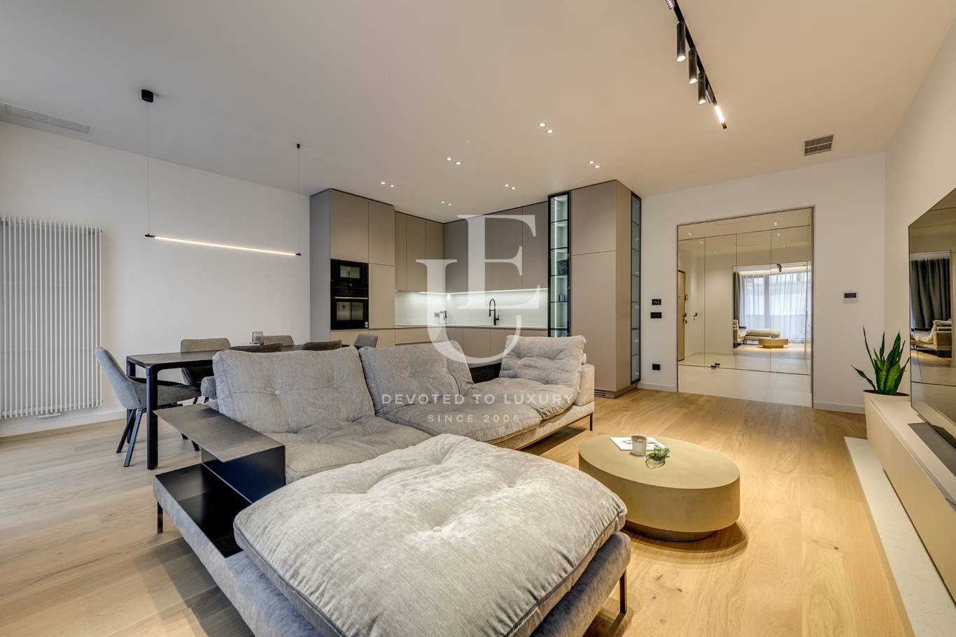 Високотехнологични решения: Апартаментът е оборудван със смарт технологии, които осигуряват максимален комфорт и улеснение в ежедневието Ви. Управлявайте осветлението, температурата и сигурността с лекота, благодарение на иновативните решения, интегрирани във всеки кът.