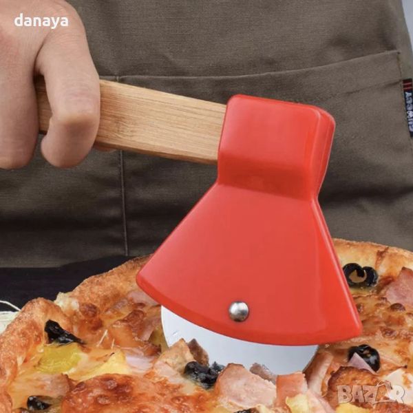 Атрактивен и задължително привличащ вниманието нож за пица Брадва. Интересен циркулярен нож за рязане на пица във формата на брадвичка.