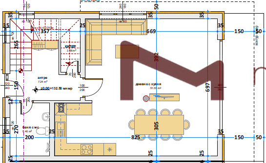 ПЪРВИ ЕТАЖ: входно антре, килер, баня-тоалет, стълбищна клетка, дневна-трапезария 51 м.кв с пряка връзка към външната тераса на двора. ВТОРИ ЕТАЖ: три спални - едната със собствена баня-тоалетна и дрешник (32 м,кв), спалня (17 м.кв), спалня (14м.кв.) втора баня с тоалет и перално помещение. Вертикалната комуникация между нивата се осъществява посредством дву-раменна интериорна стълба. Конструкцията на сградата е изпълнена с монолитна, стоманобетонова, зидария от тухли Wienerberger' с средиземноморски покрив. Стени ще са топлоизолирани с топлоизолационна система -10см. и завършени със силикатна мазилка. Дограмата е PVC, две паркоместа. Комплексът е в близост до спирка на градския транспорт на 1,5 км от центъра на кв. Галата и на 10 км от центъра на гр. Варна. За контакт 0878 615 404