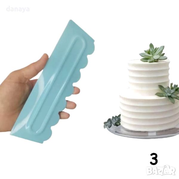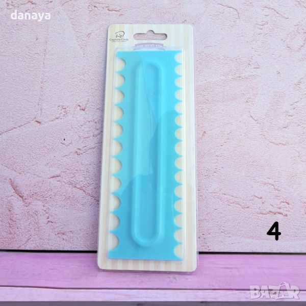 Сладкарска двустранна шпатула за измазване и оформяне на торти и сладкиши. Изработена е от висококачествена противоударна пластмаса. Предназначена да се използва за измазване на торти с маслен крем, сметана, глазура и др. Чудесна за украса на торти и сладкиши. Лесна за използване и поддръжка.