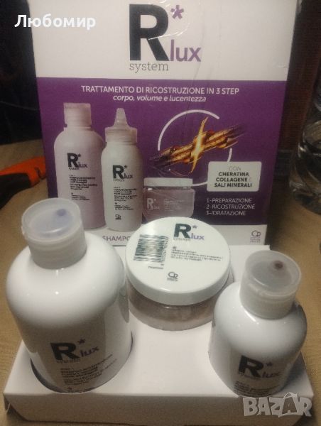 R*System Lux - Професионална терапия за възстановяване на тялото и обема за фина, слаба и увредена коса - Съдържа шампоан, течност за възстановяване на тяло и обем и маска.Lux Reconstruction Treatment за коса с липса на тяло и обем е професионалният комплект от линията R*system, състоящ се от три продукта за фина, увредена и чуплива коса с кератин и колаген.