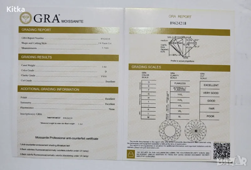 Мойсанит /диамант/ бял 6.5мм , със Cертификат → Обява 46040213