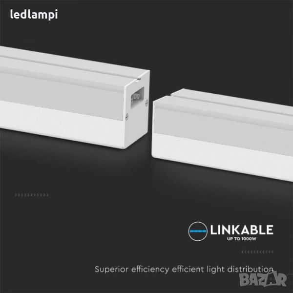 - Линейни осветители , проектирани с SMD чипове, осигуряващи изход на лумена от 100 + LM / W