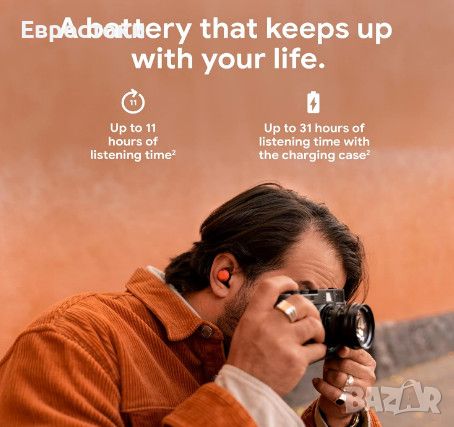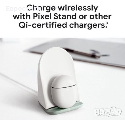 Дълго време за възпроизвеждане. Батерията осигурява безпроблемна работа: до 11 часа време за слушане или до 31 часа с калъф за зареждане. Можете да зареждате слушалките си с помощта на Pixel Stand или други Qi-сертифицирани безжични зарядни устройства.