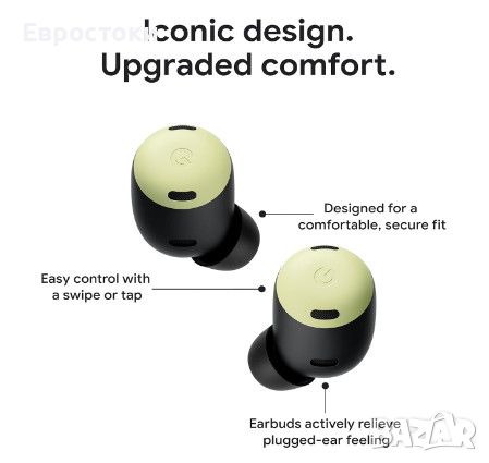 Емблематичен дизайн, повишен комфорт. Google Pixel Buds PRO са проектирани за удобно, сигурно прилягане и включват сензори, които намаляват усещането за пълнота в ушите ви. Клас на защита - IPX4.