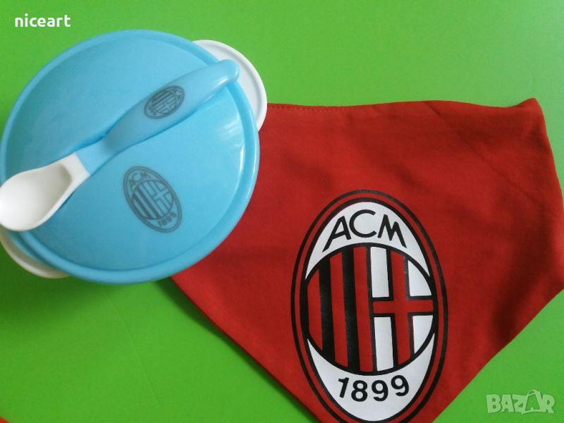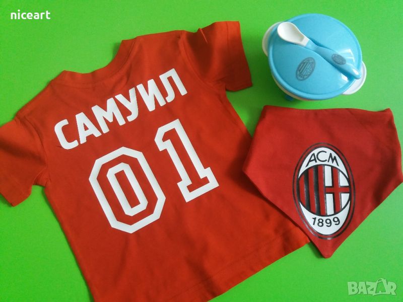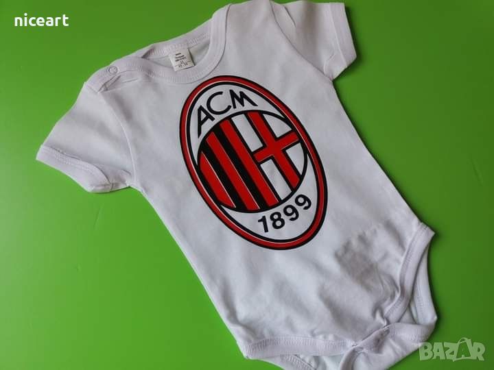 При нас може да поръчате боди на футболен клуб Милан.Ританки,лигавник,шапка,тениски и купичка с лъжичка с емблема