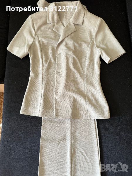Комплекта е запазен и е в много добро състояние. Обличан е само веднъж. Отговаря на размер С/М. В наситен сиво-бежов цвят.