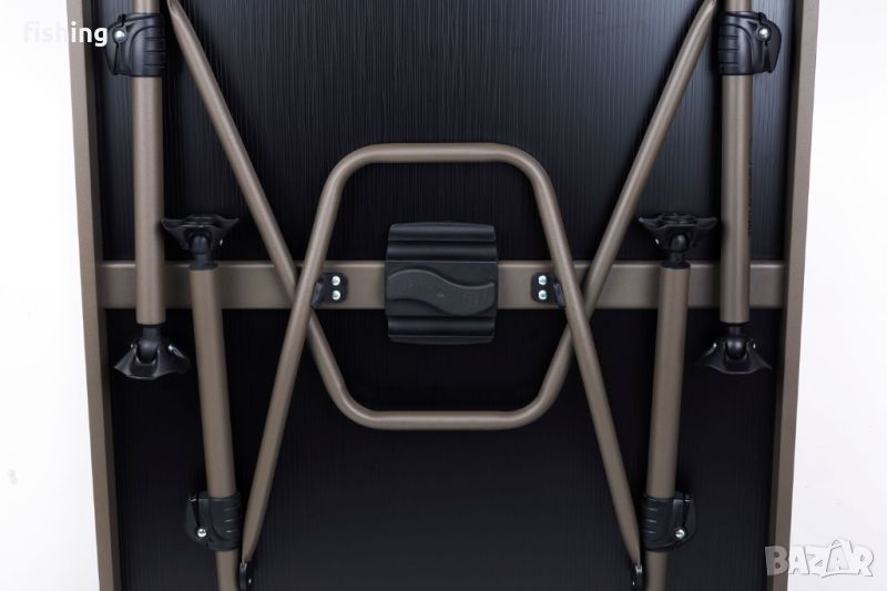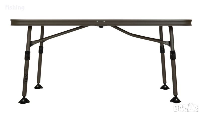 Къмпинг Маса Fox XXL Session Table е снабдена с четири индивидуално регулируеми крака. Височината на масата може да варира от 54,5 до 74,5см. Разполага с пети на краката, които са предназначени за кални терени.
