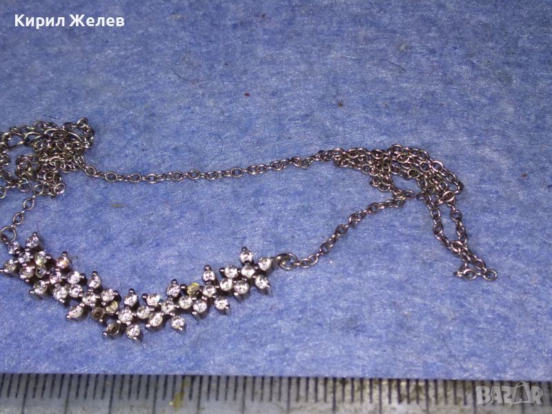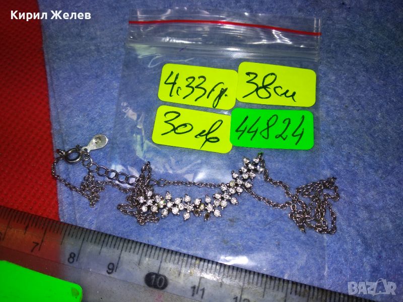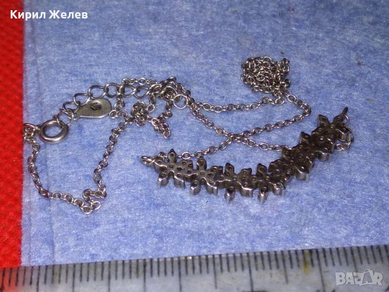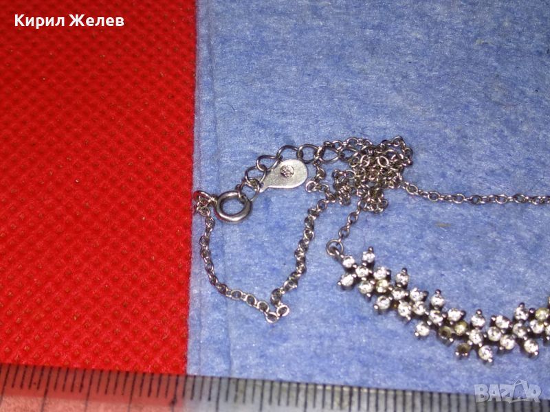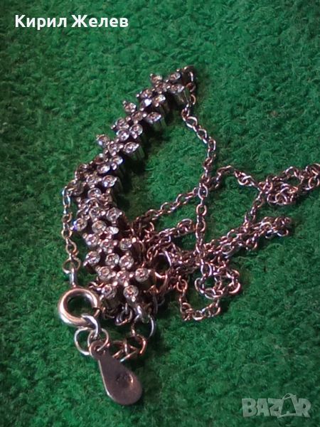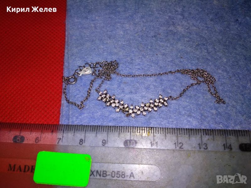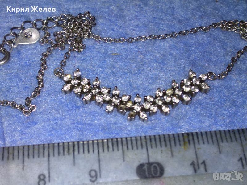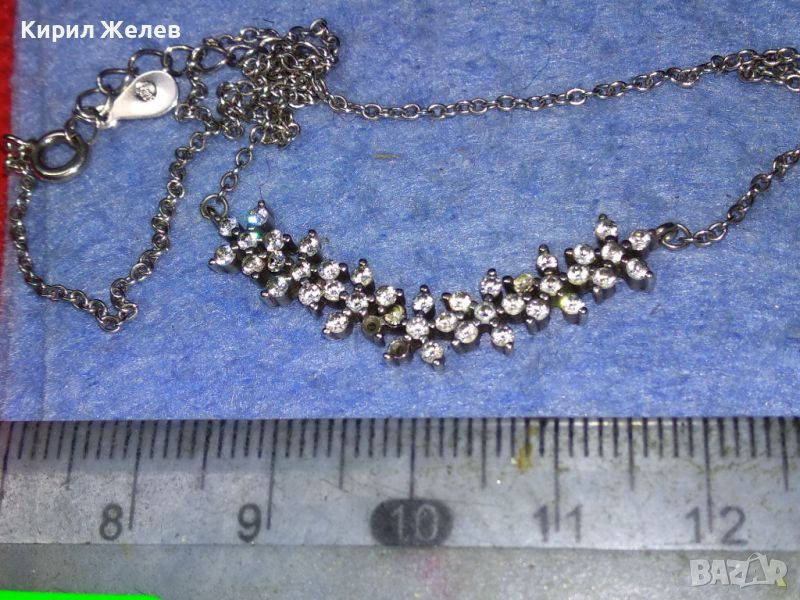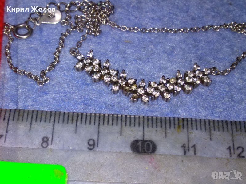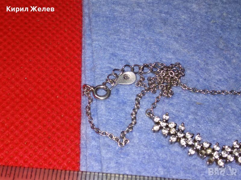 НЕЖНО СКЪПОЦЕННО СРЕБЪРНО КОЛИЕ СРЕБРО 925 с БЯЛА ПОЗЛАТА и МНОГО ФАСЕТИРАНИ БЛЕСТЯЩИ ЦИРКОНИ 44824