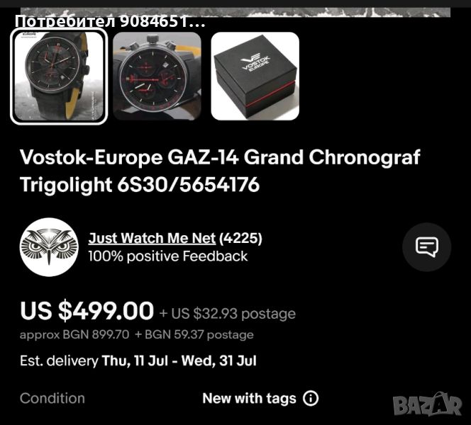 Vostok Gaz-14 Limousine Gtls NH25A-5654140 Тип механизъм : Автоматик 21 камъка - Японски механизъм Seiko NH25A /навива се от движението на ръката/ Материал корпус : Висококачествена стомана с PVD покритие Цифреблат : Светещи в тъмното стрелки и индекси изработени от тритий - GTLS Trigalight Календар : Дата на 6 часа Тип стъкло : Подсилено минерал-кристално стъкло с антирефлексно покритие за по-добро отражение на слънчевите лъчи Каишка/верижка : Естествена кожа Размери : Диаметър 45 мм и дебелина на корпуса 14,5 мм. Водоустойчивост : 5 ATM Други : Завинтващ се заден капак Гаранция : 36 месеца Верни на своя принцип да кръщават своите серии часовници на знаменити руски постижения и този път от Vostok не изневеряват на убежденията си. Серията е кръстена на един знаменит автомобил от ерата на СССР, а именно - Gaz-14 Limousine . Този автомобил е бил разработен да обслужва само най-висшите етажи на Политбюро на КПСС /руската комунистическа партия/. Автомобилът е разполагал с екстри, на които днес не обръщаме никакво внимание, но за времето си те са били нещо нечувано. Тези екстри са: климатик, автоматична трансмисия, серво на спирачките и на волана, както и невероятна шумоизолация. Този страхотна руска лимузина е служила вярно на стопаните на Кремъл в периода от 1977г. до 1989г. Тя се е превърнала в легенда и няма нищо чудно, че фирма като Vostok Europe са решили да кръстят своя серия страхотни часовници имено на нея. GTLS Trigalight - Gaseous Tritium Light Sources - Прекрасната осветеност на дисплея си Gaz-14 Limousine серията дължи на елемента Тритий, специално разработена технология от швейцарската фирма Mb-microtec. Тези тръбички, пълни с газ Тритий, гарантират перфектна осветеност дори и в най-тъмните места. От фирмата разработчик гарантират безупречната им работа за срок от над 10 години. Тритият успява да създаде обем светлина, който го прави 100 пъти по-силен от всеки друг предишен елемент, ползван за осветеност на часовниците.