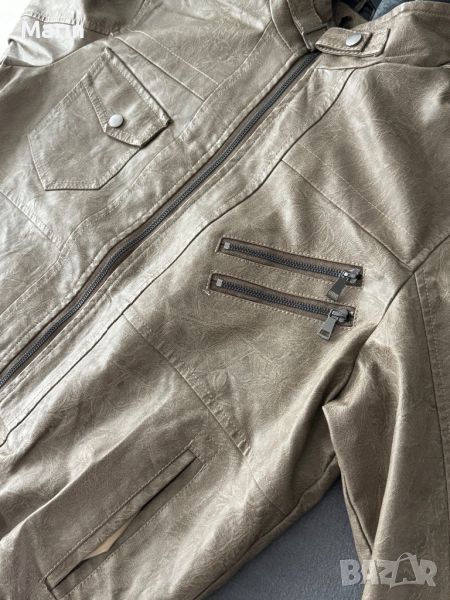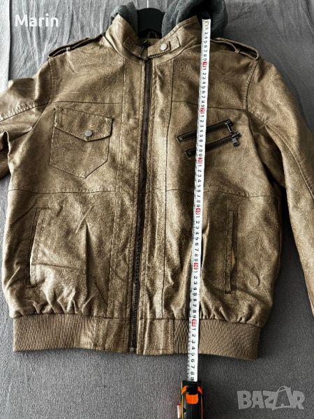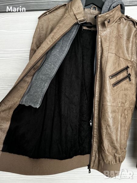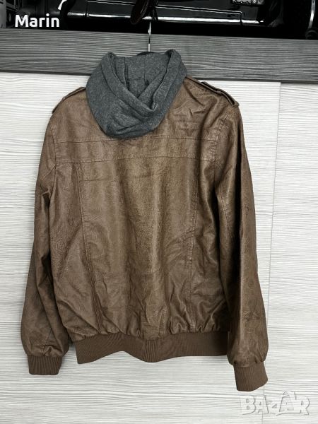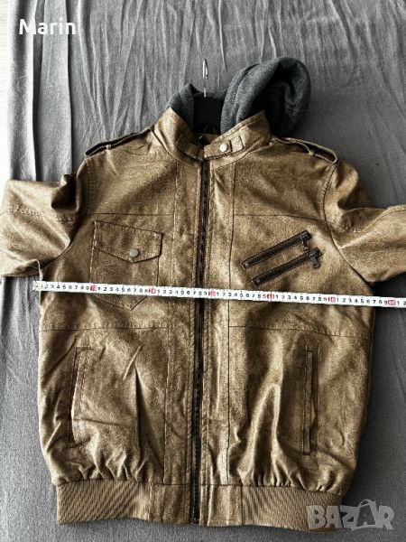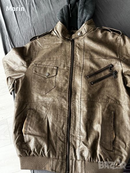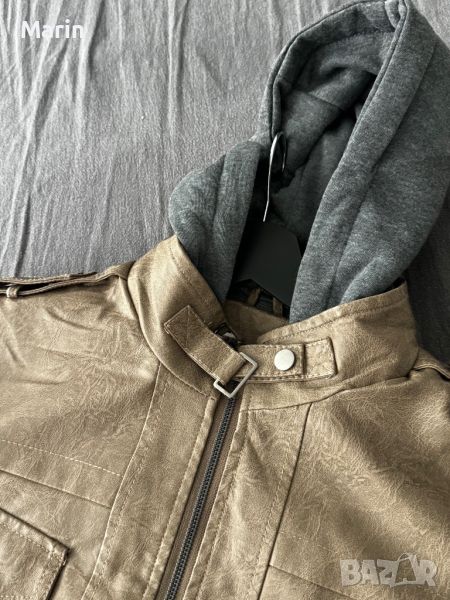 Чисто ново яке от еко кожа с памучна качулка, която може да се маха. Не е обличано. Подходящо за пролет и есен.