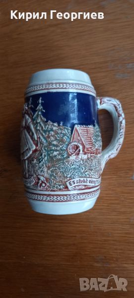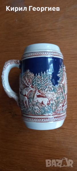 Оригинална стара керамична халба за бира с релефни орнаменти Gerz West Germany → Обява 46053742