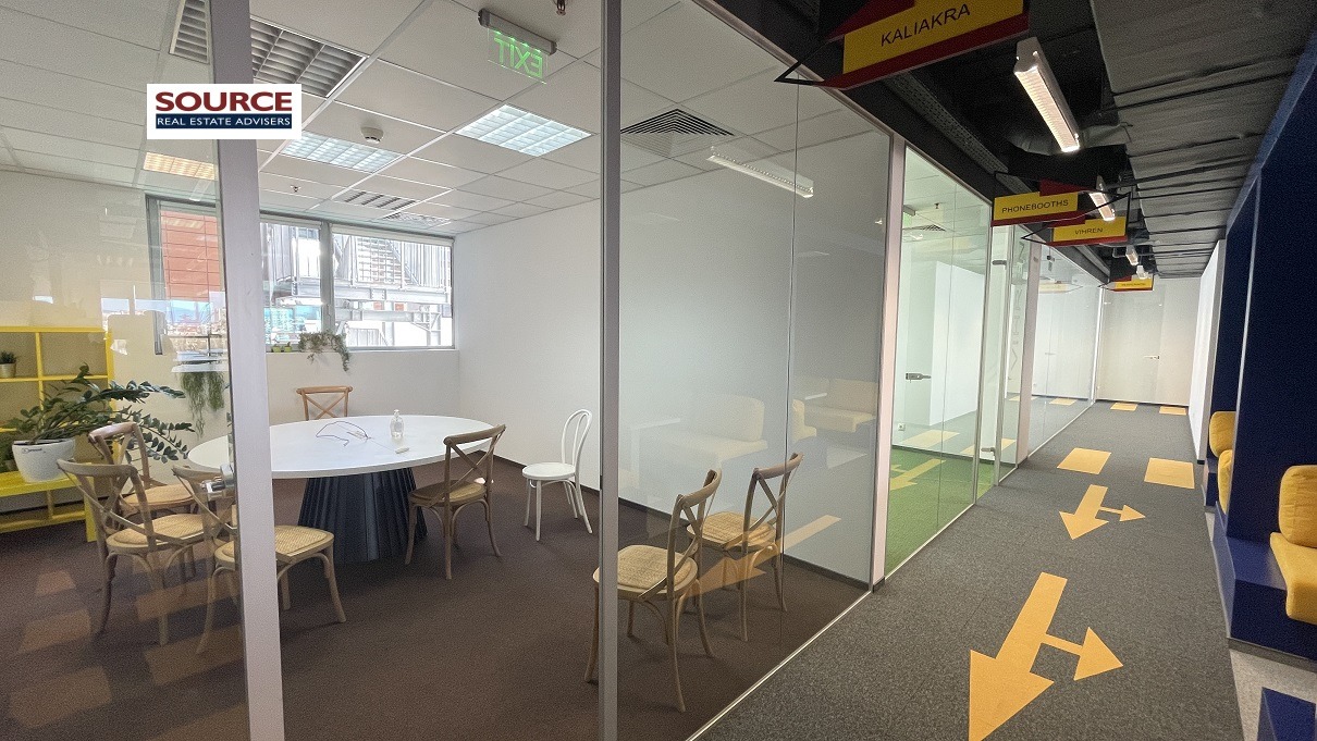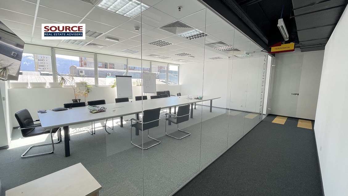 4. Офис обзавеждане: Офисът е изцяло обзаведен с висок клас офисни бюра, столове и мебели и се отдава обзаведен с обзавеждането на снимките. Може да се наеме и необзаведен.