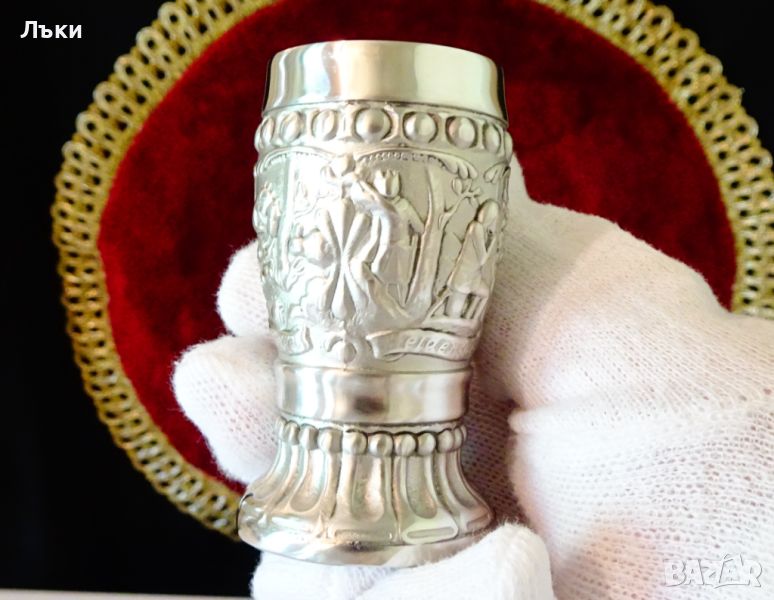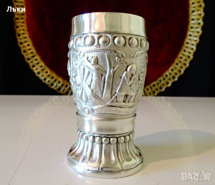Старинна немска калаена чаша на столче за