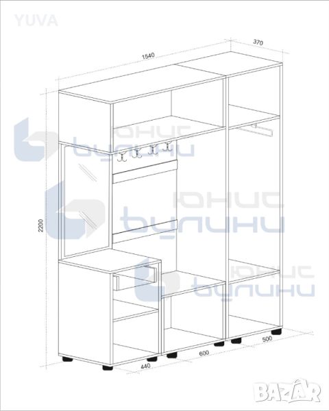 – Допълнителен гардероб ЕКО с размери: ш/д/в 500/370/2200 мм – 198,00 лв.