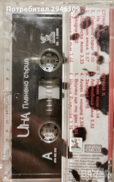 Ина - Пленено сърце(2003), снимка 1 - Аудио касети - 46055678 Ина - Пленено сърце(2003), снимка 2 - Аудио касети - 46055678 1/2