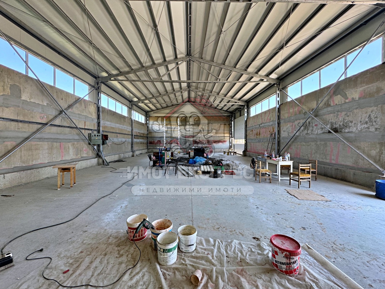Промишлено помещение, Хале, с площ 300кв.м, с два входа и изхода, височина 6 метра, с партиди за ток и вода.