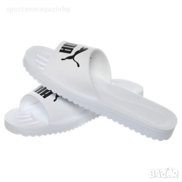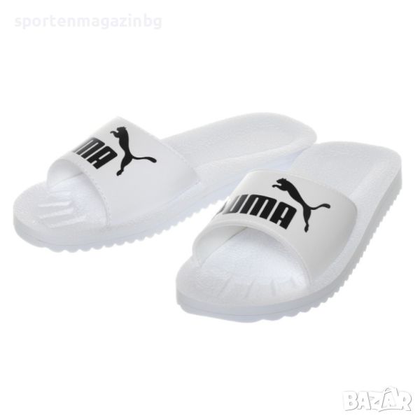 Здрава конструкция. Мека лента в горната част, изработена от синтетична кожа и приятна подплънка за естествено движение на краката. Текстурираният дизайн в очертаната стъпална подложка не позволява хлъзгане, изпотяване и е изключително мека. Пяната на стъпалото осигурява плюшено чувство под краката. Мека напречна EVA лента за плътно прилепване. Подходящи за използване под душ или мокри условия. Черен надпис с лого Puma върху лентата. Външната набраздена подметка гарантира трайност и перфектно сцепление дори в мокри условия.