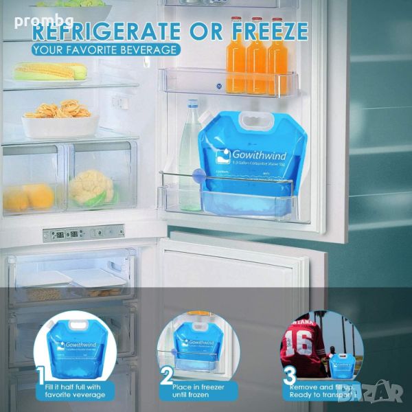 ХРАНИТЕЛЕН КЛАС - Без BPA, безопасен и нетоксичен, изработен от безвкусен и хранителен PE филм. Широко приложение - идеални за къмпинг, ваканция, туризъм, лов, пътуване, шофиране, пикник, барбекю и др. Напълнен до три четвърти, течността може да се използва и замразена като охлаждащ компрес.