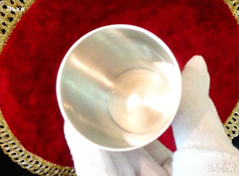 см.,тегло 140 гр.,вместимост 130 мл.Перфектно състояние със сребърен блясък.