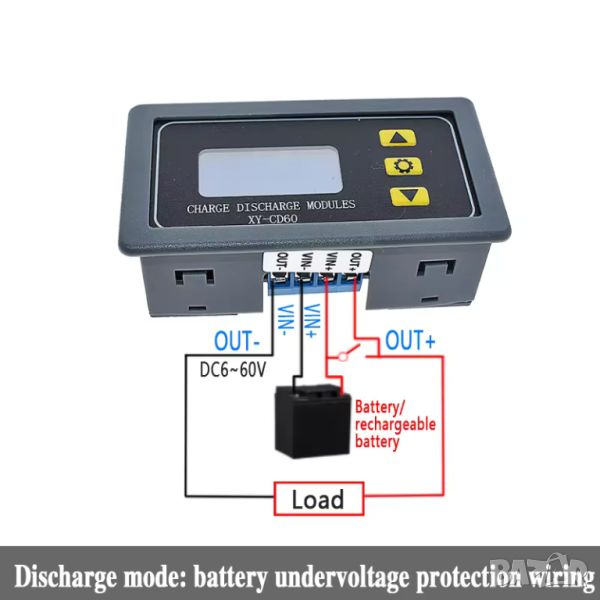 Изработен от висококачествен материал, здрав, издръжлив и практичен за използване. Предпазва батерията от ниско напрежение, предпазва батерията от презареждане и защитава контрола на натоварването, удължава живота на батерията. Когато напрежението на батерията е недостатъчно, изключете товара и включете зарядното устройство. Когато напрежението на батерията е твърде високо, изключете зарядното устройство и свържете товара. Регулируеми параметри и LCD екран, показват параметрите ясно, лесни за използване. С управляващо напрежение 6-60V, той е подходящ за батерии, литиеви батерии и др.