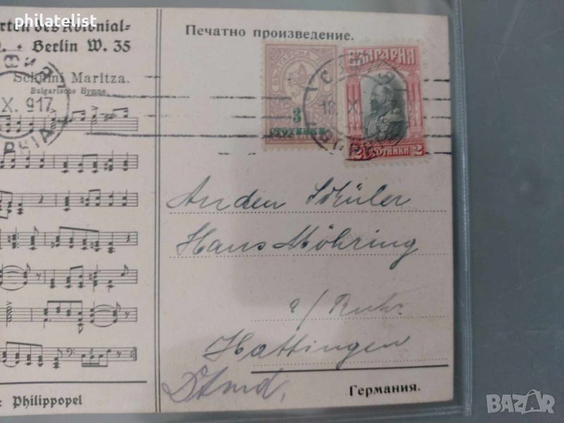 С печат София – 18.10. 1917 година , пътувала до Германия ,
