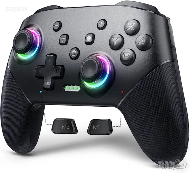 9 готини цвята LED светлина с 3 режима: Джойстиците на нашия контролер за безжичен превключвател са проектирани с 8 цвята светлина и 1 дъгова RGB LED светлина. Превключването на три режима на осветление ви носи различно игрово изживяване. Строб режим: Светодиодите в цвят на дъгата мигат бързо, като диско; Режим на дишане: 8 LED цвята се сменят бавно; Статичен режим: Джойстиците ще поддържат избрания от вас цвят. Можете свободно да изключите светлинния режим.