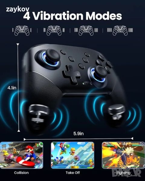 🎮【4-Speed HD Rumble Vibration & Ergonomic Design】 Вградени двойни вибрационни двигатели с 4 нива на вибрационна обратна връзка: Няма, Слаба, Средна, Силна (0%, 25%, 50%, 100%). Едно щракване за регулиране на режима на вибрация според вашите предпочитания. Преработените дръжки предотвратяват умората на ръцете след продължителна игра. Нехлъзгащият дизайн ви предпазва от притеснения за потни длани. Бутонът Споделяне ви помага незабавно да споделяте екранни снимки и видеоклипове с приятели.
