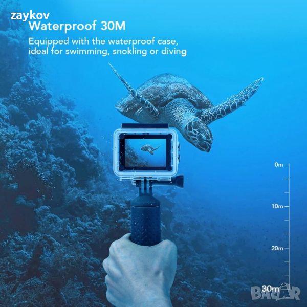 Със здравия и красив водоустойчив корпус вече можете да се гмуркате на дълбочина до 30 метра и да снимате едновременно. Перфектен за водни спортове като плуване, гмуркане или сърф. Сега най-накрая можете да изследвате нови води.