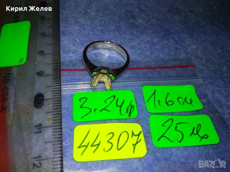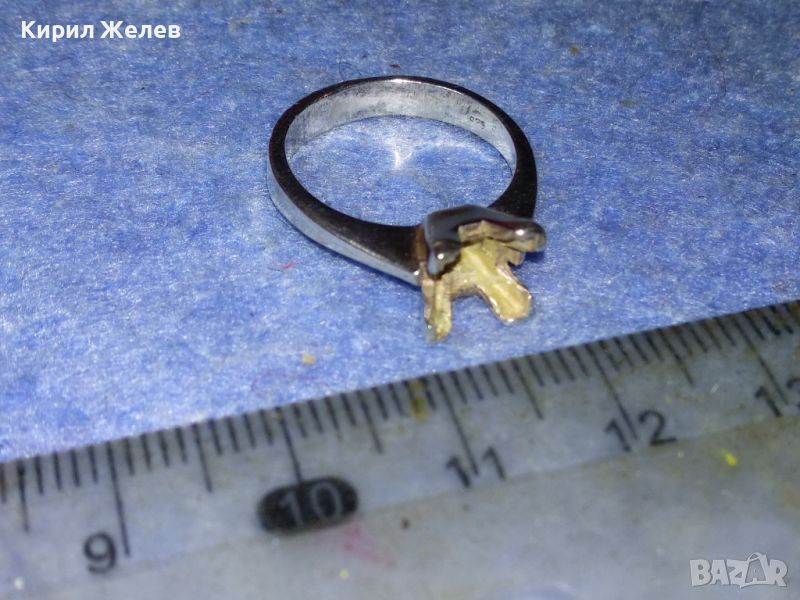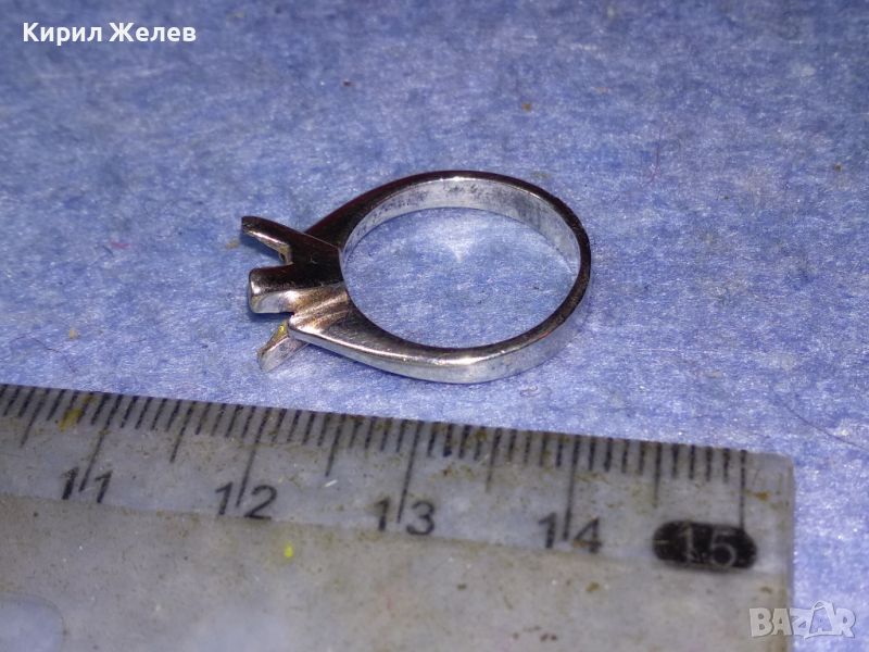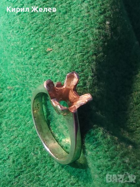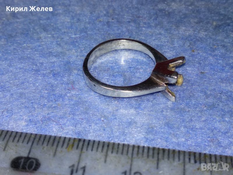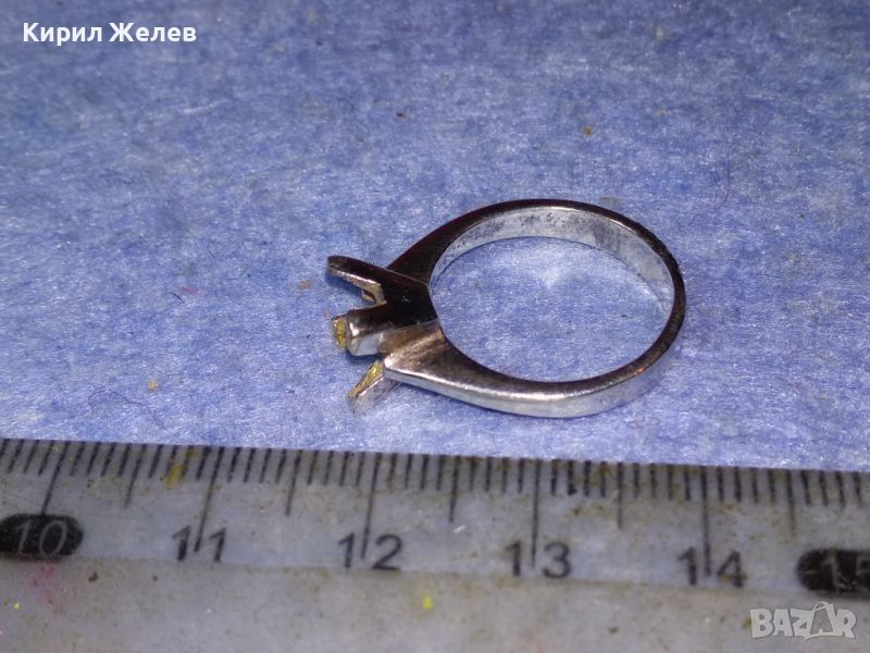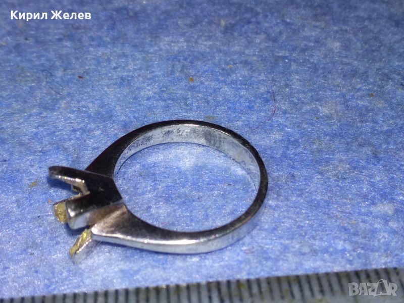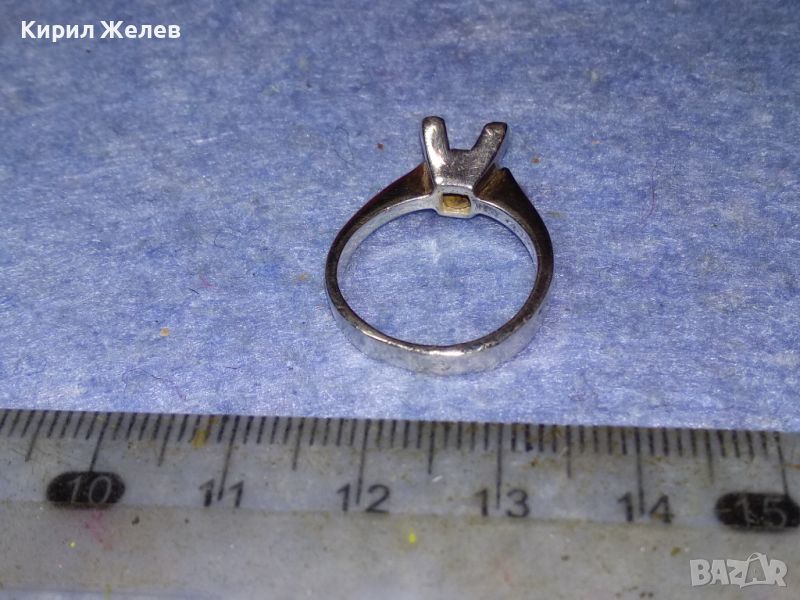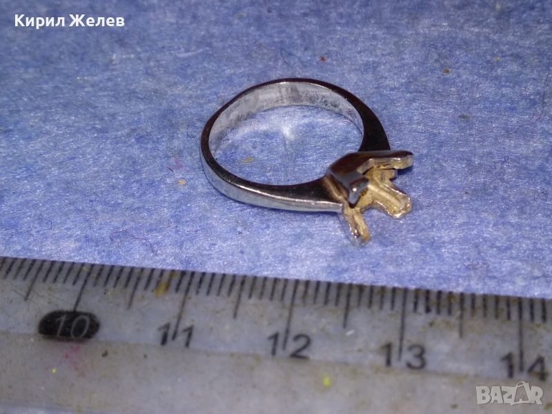 СТАР СРЕБЪРЕН ПРЪСТЕН СРЕБРО 925 с БЯЛА ПОЗЛАТА и ГНЕЗДО За ИНКРУСТИРАНЕ на СКЪПОЦЕНЕН КАМЪК 44307