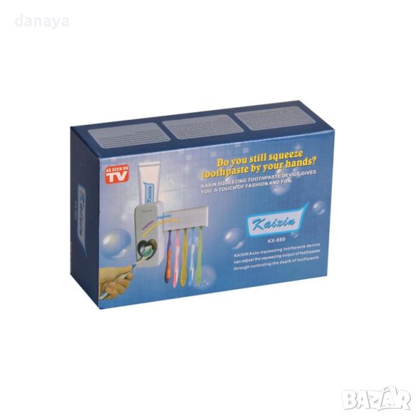 Автоматичен диспенсър за паста за зъби в комплект с държач за четки за зъби