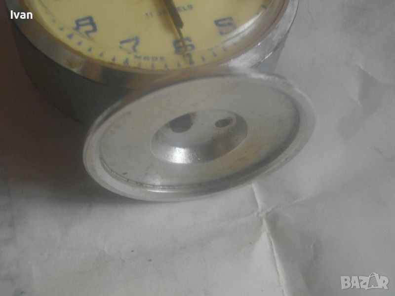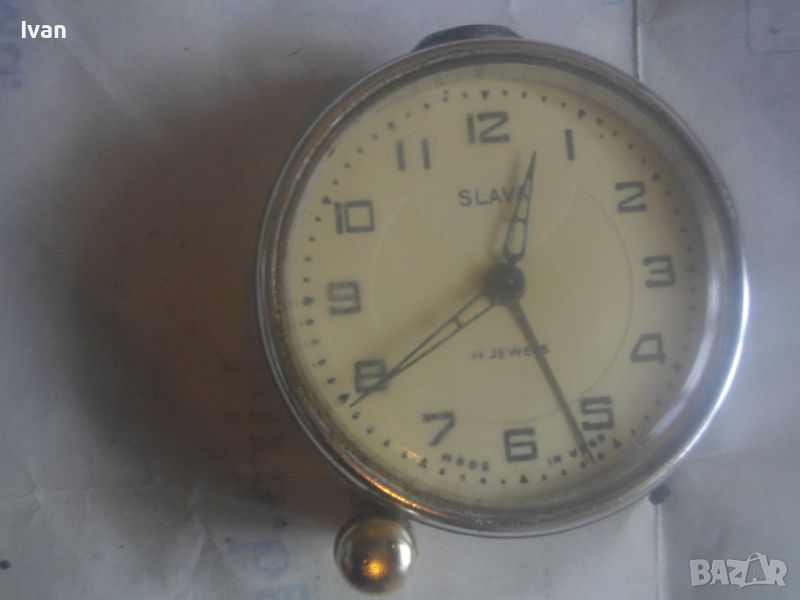 Будилник най-стар сив малък SLAVA 11 JEWELS - Made in USSR - 11 камъка - само с 1 краче на основата. Работи отлично, без забележки. Здраво стъкло.