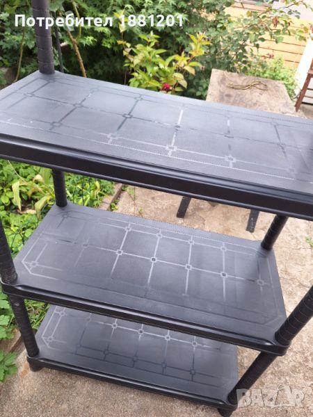 Етажерката е изработена от здрава пластмаса, което я прави лесна за почистване.