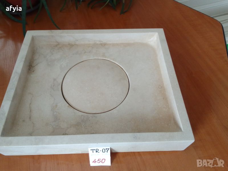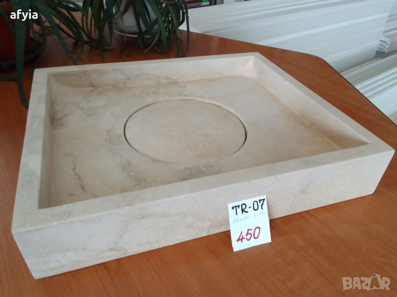 Правоъгълни мивки от светъл травертин - 2 бр. Размери: 45х38 см, височина 8 см., стандартен отвор за сифон.
