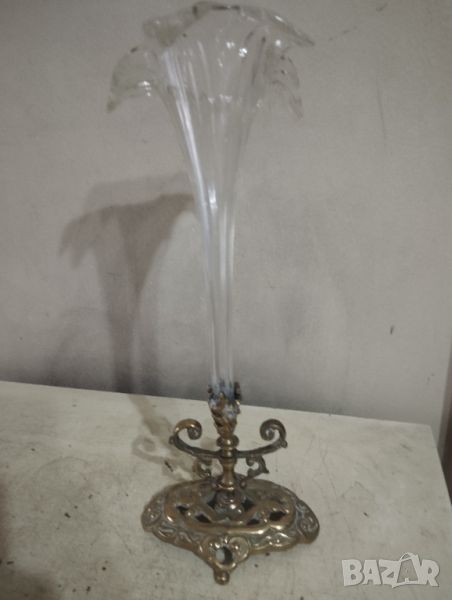 Месингова основа,стъклен съд.Внос от Франция.