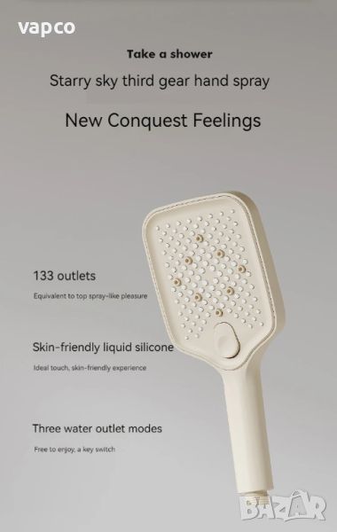 - Ръчен душ с възможност за регулиране на височината и ъгъла и три режима на работа и бутон за превключване между тях