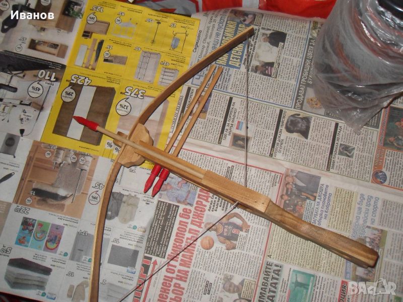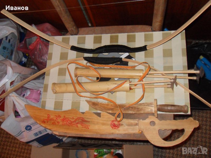 продавам изработени от дърво ножове,лъкове в комплект със вакум-стрели в колчан,арбалет-закупени от работилница в Царевец-В.Търново