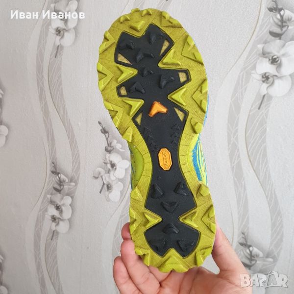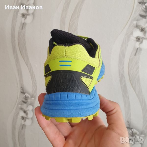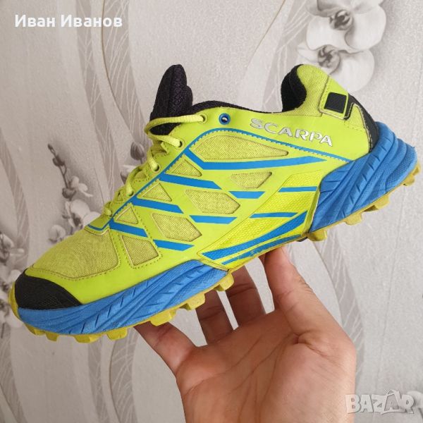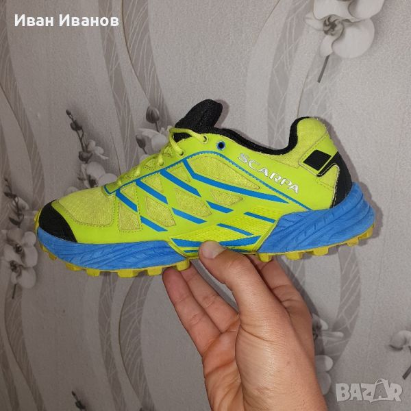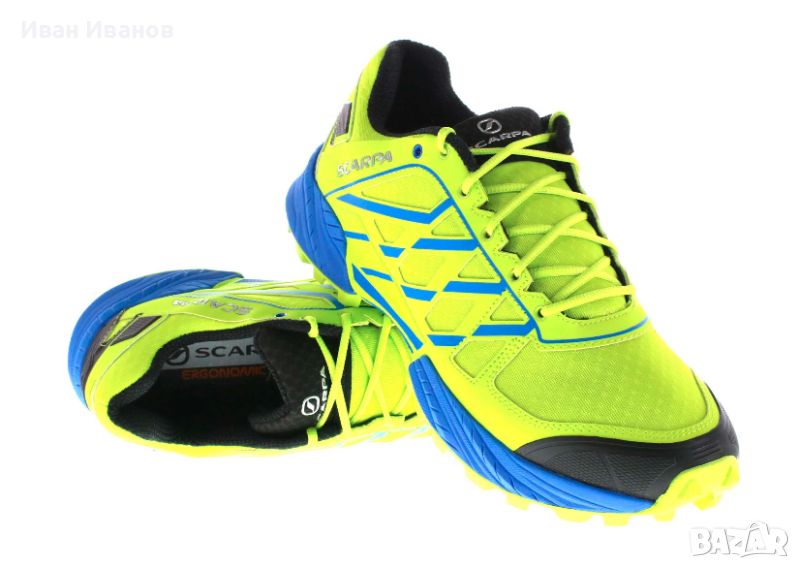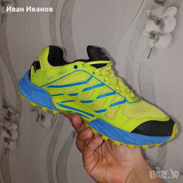 Scarpa NeutronМалко използвани , с минимални следи , без забележки , леки и практични . За реални снимки питайте .Ежедневен шофьор със сърцето на Ferrari? това е Neutron. Междинната EVA подметка с двойна плътност и шест милиметра падане ви позволява да трупате мили с комфорт. Изпъкнала подметка и достатъчна защита за пръстите ви дават свободата да ускорявате темпото по скалисти, неравни терени и да се приберете у дома с щастливи крака. Дишащата мрежа и синтетичната горна част поддържат краката ви хладни през лятото, като същевременно издържат на износване в зони с висока абразия. С тегло само 9,7 унции, това е вдъхновена от състезания, но достойна за тренировка обувка за път.Scarpa Neutron е мощна, бърза и чувствителна обувка за пътека, която е подходяща както за състезания по крос-кънтри бягане, така и за Skyrunning. Благодарение на леката конструкция и малкия обем NEUTRON е идеален за бързи бягания, без компромис с омекотяването и защитата. Прикрепените към междинната подметка жлебове осигуряват правилната динамика на стъпките, а подметката Genetic Vibram осигурява перфектно сцепление на всякакъв терен, независимо дали в мокри или сухи условия.Спецификации:- Горна част: Синтетична кожа и полиестерна мрежа- Подплата: Полиестер- Стелка: H-EVA плоча- Междинна подметка: Компресионно формована EVA- Подметка: Vibram Genetic- Последна: TRN- Тегло: 275g; 9.7oz (1/2 чифт размер 42)